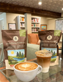I’m delighted to share Café Three Pines, a true dream come to life. Inspired by the Three Pines series and created with readers and community in mind, the café sits beneath Brome Lake Books in my local village of Knowlton, Québec. It has become a welcoming place where visitors can enjoy a café au lait and croissant, a bowl of soup, a good book, and perhaps a quiet conversation. It’s heartening to see readers gather there and bring a little of Three Pines into the real world.